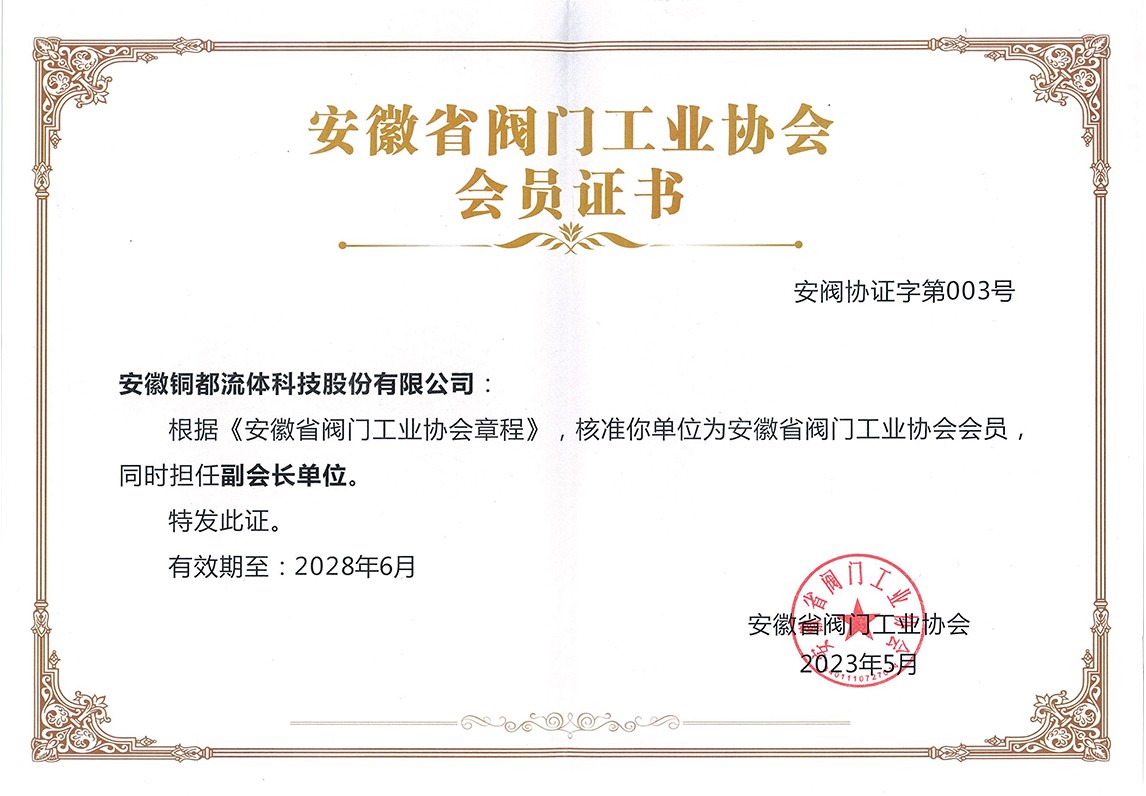 安徽省閥門工業(yè)協(xié)會(huì)副會(huì)長(zhǎng)單位