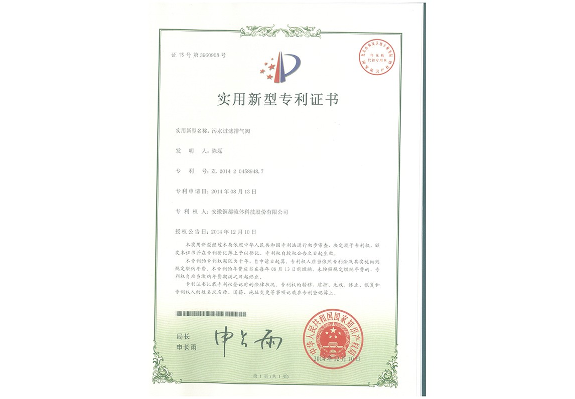 污水過濾排氣閥