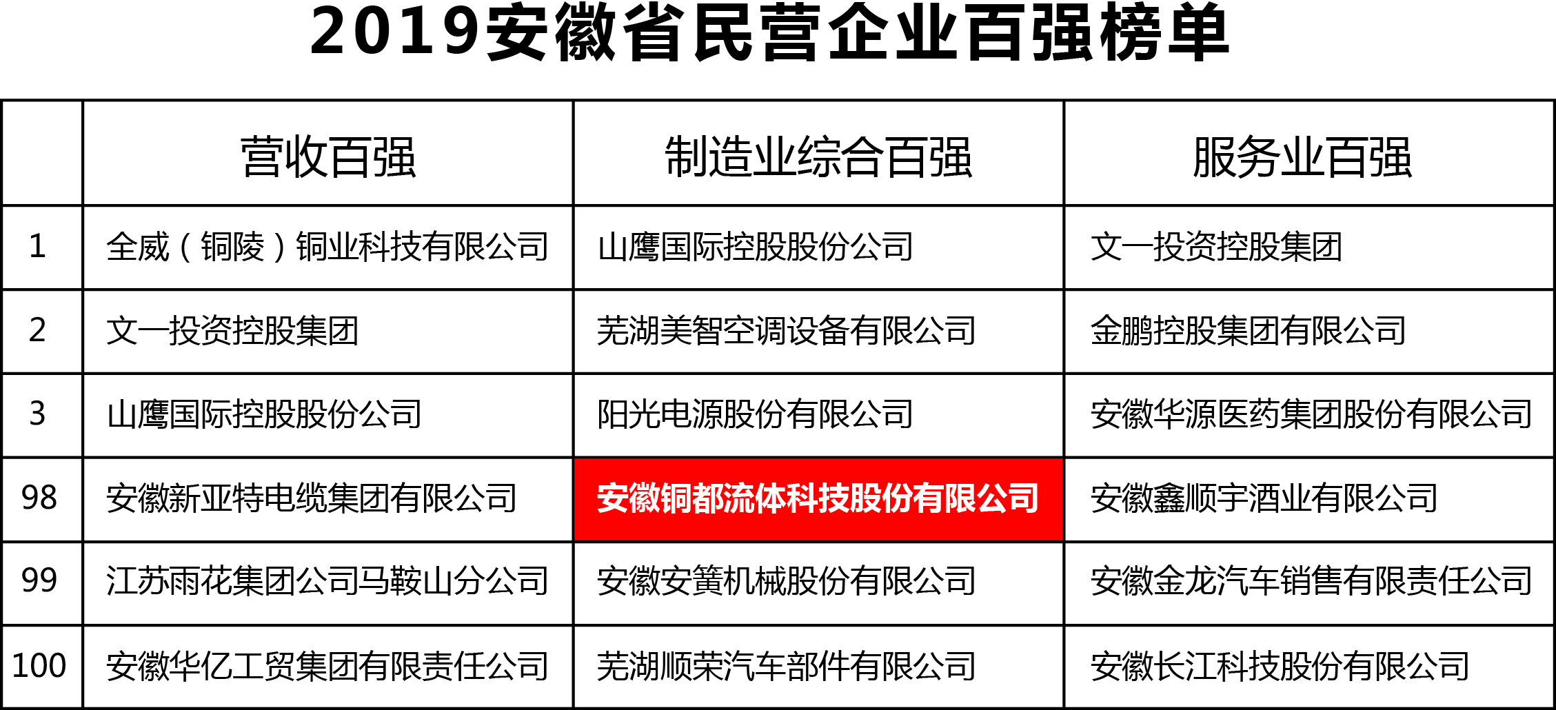 安徽銅都流體科技股份有限公司入圍制造業(yè)綜合百?gòu)?qiáng)。