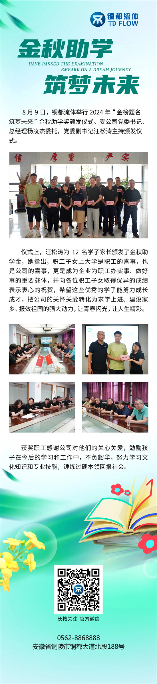 金榜題名 筑夢(mèng)未來(lái) | 銅都流體舉行2024年金秋助學(xué)獎(jiǎng)?lì)C發(fā)儀式